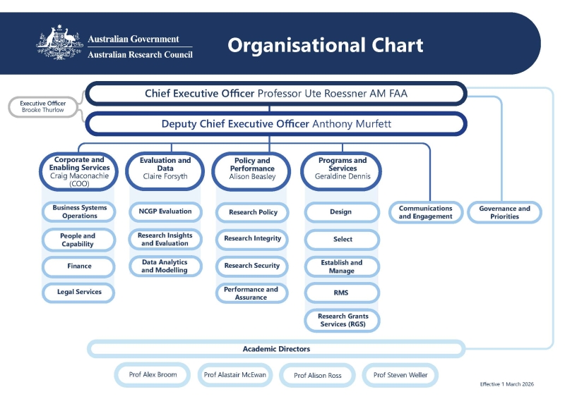 This Organisation Chart is effective from the 1 March 2026. Download PDF (308.21 KB) Created date: 1 March 2026 Modified date: 1 March 2026 Publication date: 1 March 2026
